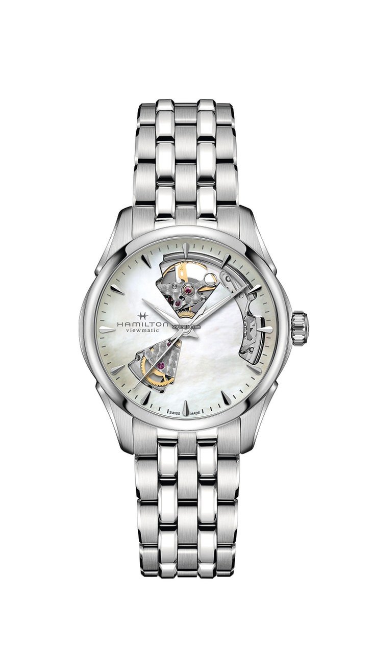 Диаметр корпуса: 36 мм. Механические часы с автоподзаводом. Открытый баланс хода. Перламутровый циферблат.