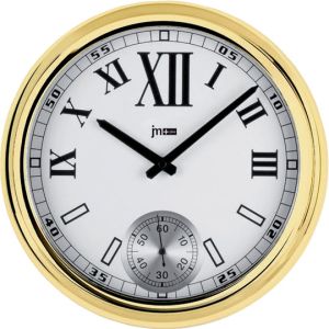 Диаметр корпуса: 31 см. Секундная стрелка вынесена на отдельный циферблат. Часы с двумя кварцевыми механизмами. Один механизм отвечает за часы и минуты на большом циферблате, второй - за секунды на маленьком циферблате.