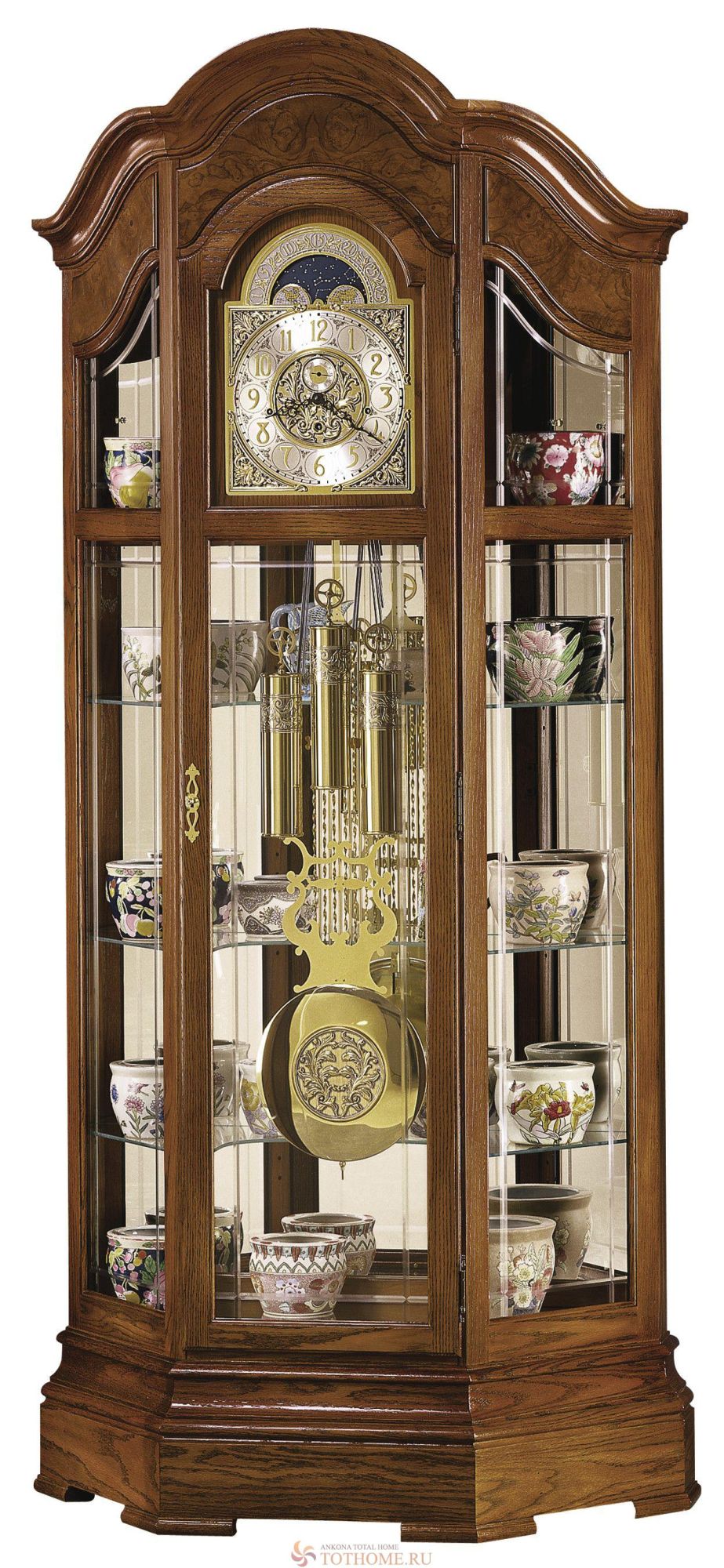 Эти внушительные часы-витрина из коллекции «Broadmour Collection» украшены арочным фронтоном, снабжены стеклянными полками и отделаны шпоном оливкового ясеня.Специально разработанный дизайн циферблата, изысканные надсводные уголки, центральный диск и лунный календарь.Узоры, украшающие циферблат, повторяются также на латунных гирях и маятнике.Остекление корпуса и дверей выполнено с применением фацетированного хрустального стекла.Все шесть полок предназначены для предметов ваших коллекций. Три полки могут быть установлены на любой высоте витрины позади двигающегося маятника.