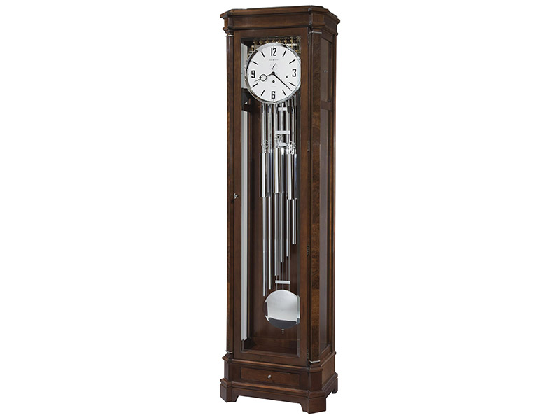 Все напольные часы из серии «Limited Edition» пронумерованы при помощи таблички с гравировкой на задней стороне рейки верхней дверцы.Часы искусственно состарены вручную и обладают сатинированным блеском. Они отделаны в цвете Бордоской Вишни (Cherry Bordeaux) и изготовлены из отборных пород вишневого дерева и покрыты шпоном.Эти изящные напольные часы сочетают простые и в то же время элегантные линии. Их украшают уголковые колоны из шпона Русского Ореха с наплывами, а также многоярусные фронтон и основание с дополняющими их ангулярными краями. Ящик для хранения в основании часов обшит фетром.В отделке фронтона и капителей колонн присутствуют оттенки хрома.Глянцевый белый циферблат, рельефные арабские цифры и часовые деления черного цвета, черные минутная и секундная шкала и часовые стрелки.Циферблат обрамляет полированный хромированный ободок.Хромированный решетчатый маятник и полированные гири дополняют линейный образ этих часов.Фацетированные стекла.Благодаря уникальной стеклянной панели, пропускающей много света, внутренняя часть корпуса часов получает дополнительно освещение и яркость.Верхняя съемная стеклянная панель фацетирована и обеспечивает легкий и быстрый доступ к механизму.Корпус подсвечивается изнутри при помощи энергосберегающей LED лампы. Три режима яркости подсветки регулируются касанием верхнего правого шарнира дверцы.Механизм Kieninger, тросовый подвес гирь, три мелодии на выбор («Вестминстер», «Святой Михаил» или «Уиттингтон») играют каждую ¼, ½ и ¾ часа соответственно с боем полных часов, 9-трубчатый гонг. Часовой механизм с 36 подшипниками (24 бронзовых втулки и 12 из драгоценных камней).Автоматическое ночное отключение мелодии и боя.Запирающаяся передняя дверца.В поставку включена капсула, отделанная никелем, с фамильным сертификатом, где вы сможете записывать историю этих часов для будущих поколений.