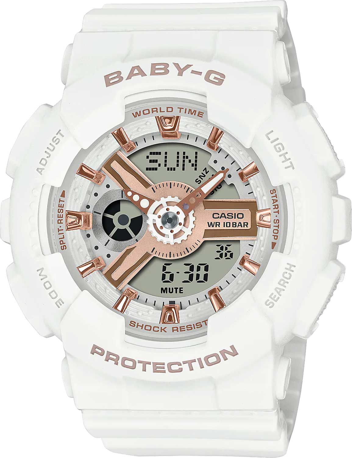 Диаметр корпуса: 43,4 мм, толщина 15,8 мм. Противоударный корпус защищает механизм от ударов и вибрации. Циферблат подсвечивается светодиодом. В часах есть функция послесвечения - подсветка продолжает работать несколько секунд после того как кнопка подсветки была отпущена. Цвет подсветки: оранжевый. Необритовое светонакопительное покрытие обеспечивает длительное послесвечение в темноте даже после кратковременного нахождения на свету. 12-ти и 24-х часовой формат времени. Секундомер с точностью показаний 1/100с и временем измерения 24ч. SPLIT-хронограф. Таймер обратного отсчета от 1мин до 24ч. Мировое время – 48 городов (29 часовых поясов), всемирное координированное время (UTC). Функции включения/отключения летнего времени, включения/отключения звука. Водонепроницаемость в соответствии с ISO 2281. Подсветка: Neobrite, светодиодная. Звуковой сигнал: 5 будильников, один с функцией Snooze, ежечасный сигнал. Календарь автоматический: число, день недели, месяц (до 2099г).