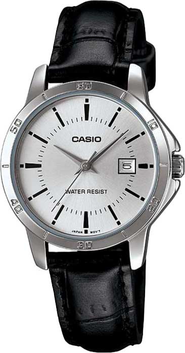Диаметр корпуса: 30,2 мм, толщина 7,8 мм. Индикация даты. Ремешок с классической застежкой. Имеется мужской вариант модели MTP-V004L-7A.
