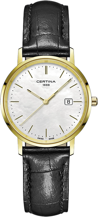 Диаметр корпуса: 29 мм. Корпус из желтого золота. Перламутровый циферблат. Индикация даты.