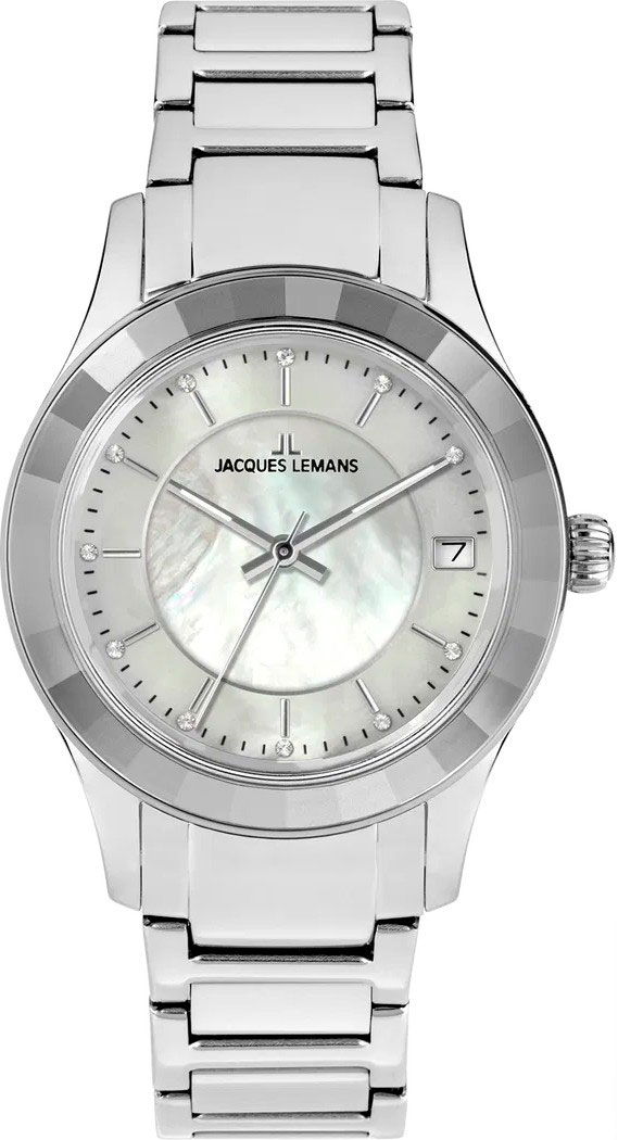 Диаметр корпуса: 34 мм. Индикация даты. Перламутровый циферблат украшен кристаллами.