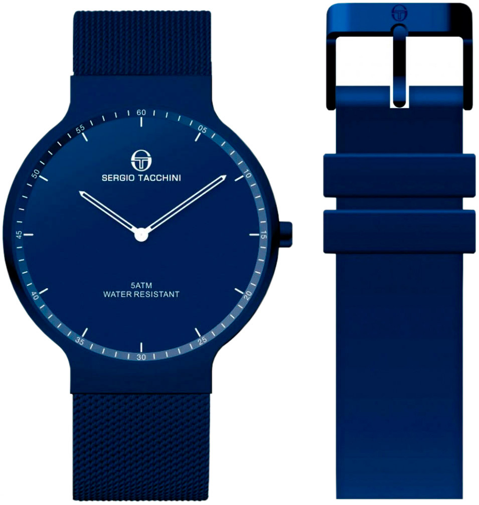 Диаметр корпуса: 40 мм. Браслет миланского плетения. В комплекте сменный силиконовый ремешок синего цвета.