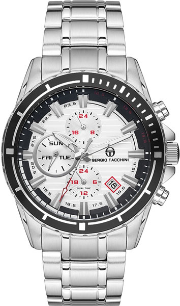Диаметр корпуса: 44 мм. 12-ти и 24-х часовой формат времени. Второй часовой пояс в 24-х часовом формате времени. Заводная головка с защитой. Индикация даты.