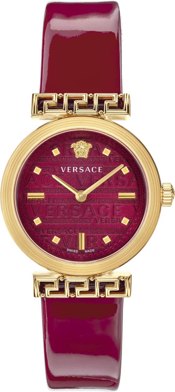 Диаметр корпуса: 34 мм. На циферблате размещено изображение головы Медузы. Корпус часов украшен фрагментами меандрового орнамента. Рифленая заводная головка. Ремешок из натуральной лаковой кожи.