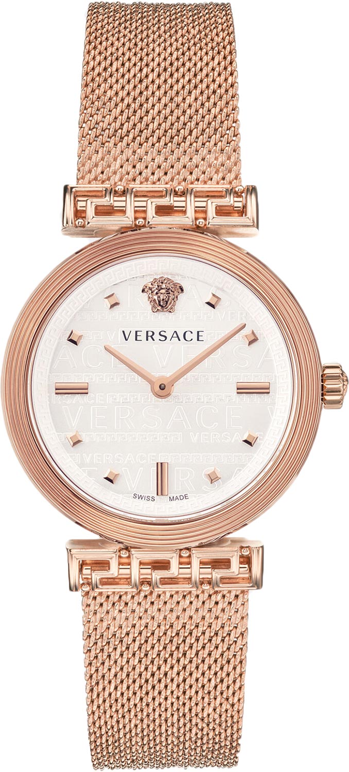 Диаметр корпуса: 34 мм. На циферблате размещено изображение головы Медузы. Корпус часов украшен фрагментами меандрового орнамента. Рифленая заводная головка. Браслет миланского плетения.