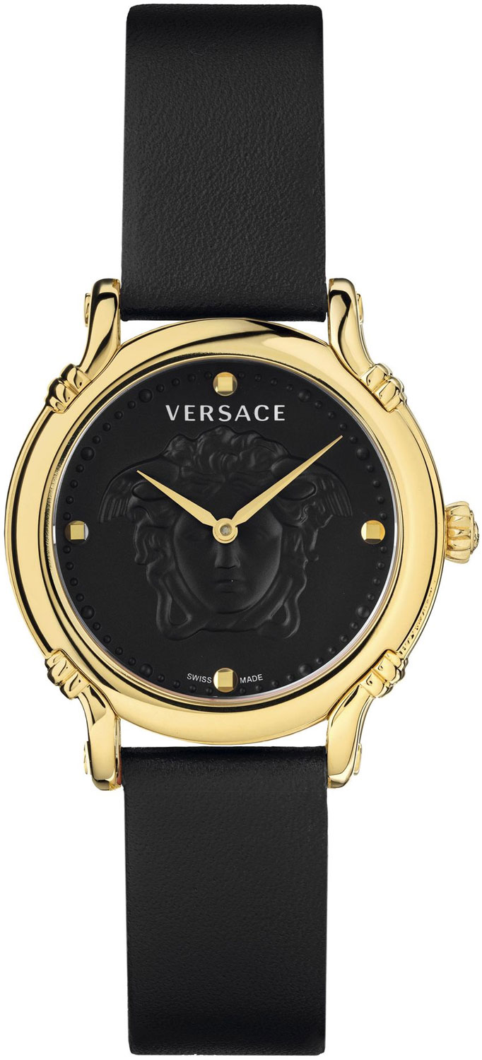 Диаметр корпуса: 40 мм. Циферблат с барельефом головы Медузы. Рифленая заводная головка украшена рельефным изображением головы Медузы. Задняя крышка украшена гравировкой головой Медузы. Кожаный ремешок с внутренней стороны выполнен со знаковым принтом барокко. Классическая застежка украшена узором и фирменным логотипом.
