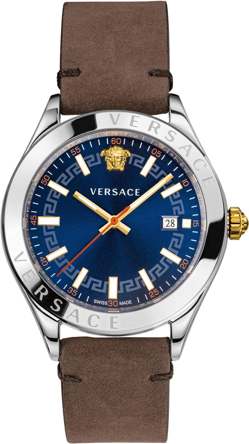 Диаметр корпуса: 42 мм. Окошко даты. Циферблат украшен меандровым орнаментом. Циферблат в положении 12 часов и заводная головка украшены рельефным изображением головы Медузы. Кожаный ремешок с классической застежкой.