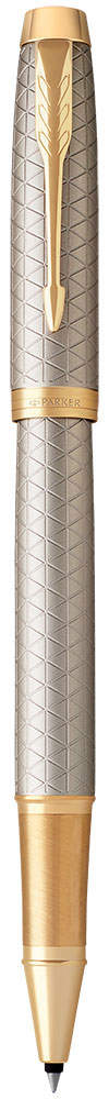 Длина: 13,8 см, диаметр 13 мм. Стержень в комплекте черный, F (тонкий). Ручка-роллер Parker IM Premium T323 Grey GT из коллекции IM Premium, модель 2017. Материал: ручки - серебристый матовый анодированный алюминий с лазерной гравировкой в виде эксклюзивного графического орнамента, в отделке применяется полированная латунь с позолотой. В ручке используются стандартные стержни-роллеры Parker, в комплект поставки входит один стержень черного цвета.