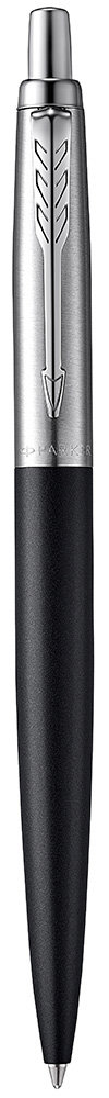 Длина: 13,2 см, диаметр 10 мм. Стержень в комплекте синий, M (средний). Материал: ручки - полированная нержавеющая сталь, покрытая матовым черным лаком. Отделка деталей дизайна - тщательно шлифованная сталь цвета хрома. В ручке используются стандартные шариковые стержни Parker, в комплект поставки входит 1 стержень синего цвета. Механизм нажимного действия.