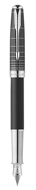 Размер: 131 мм. Перо: золото 18К. Отделка пера: покрытие рутением, перекрестный рисунок с гравировкой. Толщина пишущего узла: F (тонкая). Корпус: ювелирная латунь. Отделка: черный матовый лак, отделка колпачка - серебро с гравировкой специальным «клетчатым» рисунком, покрытое черным матовым лаком, отдельные элементы дизайна - палладий. Система заправки: картриджно-конверторная. Особенности: используется конвертер Parker DeLuxe для заправки чернилами из флакона, возможно использовать стандартные картриджи Parker и мини картриджи Parker. Комплектация: ручка с конвертором De Luxe, картридж, подарочная коробка, инструкция по эксплуатации с гарантийным талоном.