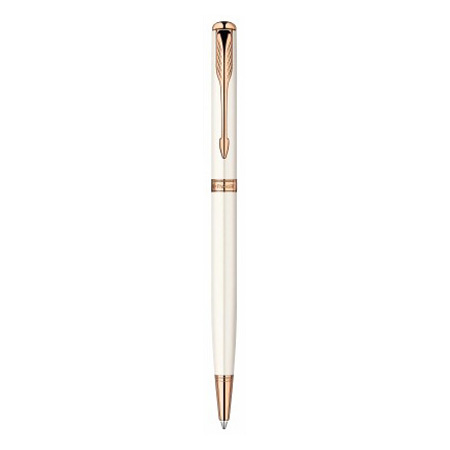 Поворотный механизм.Отделка корпуса/клипа: Напыление розового золота методом PVD / перламутровое покрытие корпуса / блестящее черное клеймо на колпачке.Пишущий узел: Средний размер.
