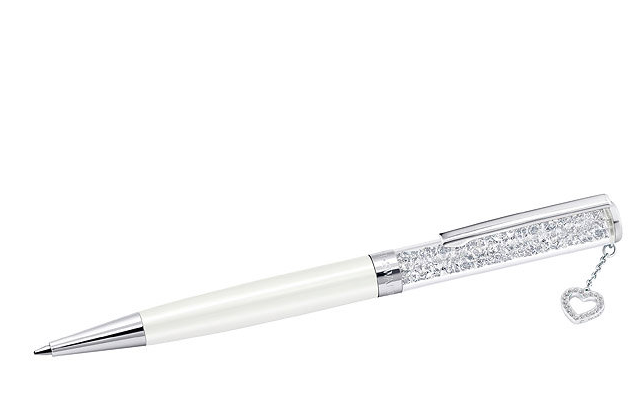 Размер: 14,3 x 1,1 см. Эта классическая белая шариковая ручка – идеальный подарок на День святого Валентина или День матери. Подвеска в форме сердца украшена прозрачным кристальным паве. Ручка с хромовыми акцентами и зажимом заполнена 540 нежными прозрачными кристаллами. Она продаётся в элегантной синей подарочной коробочке с окошком спереди. Качественный стержень легко заменить: просто раскрутите ручку по центру.