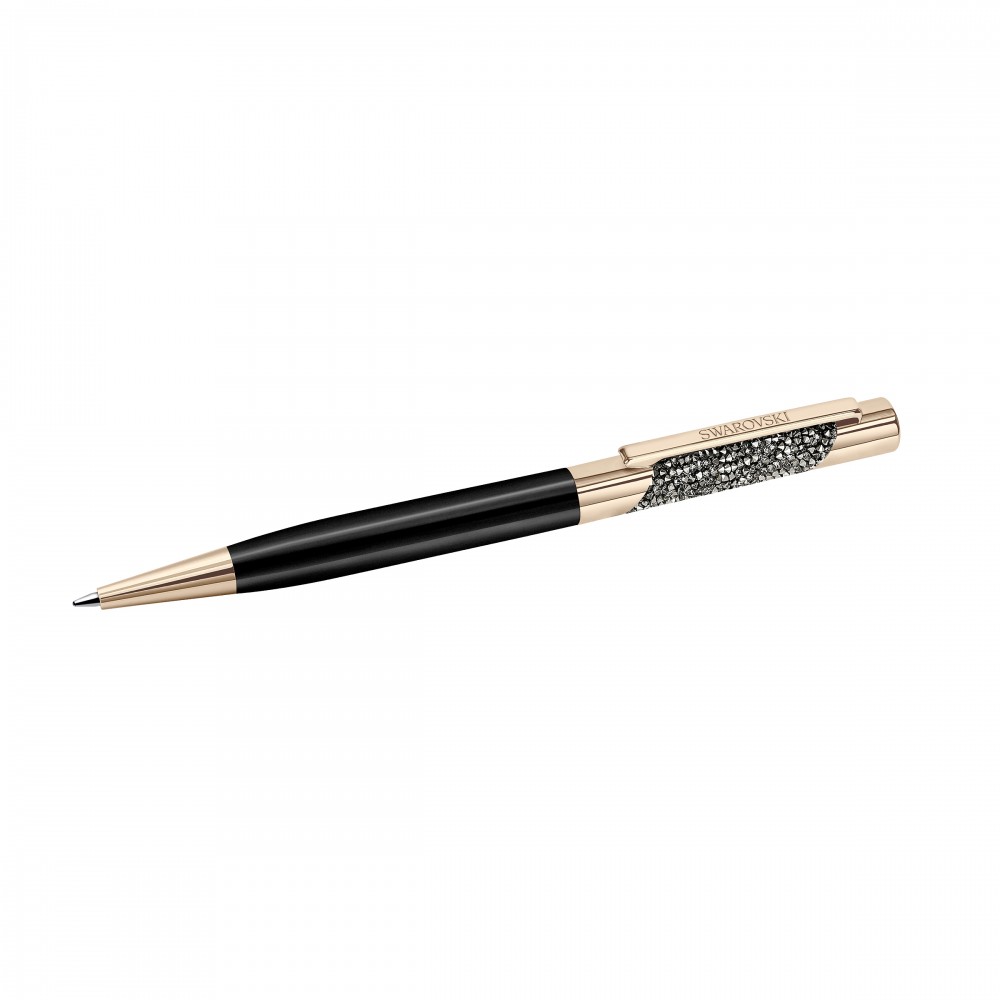Размер: 14 х 1 см. Пишите с блеском! Эта потрясающая шариковая ручка украшена примерно 520 чёрными и золотыми кристаллами в технике Ultra-Fine Crystal Rocks. Завершающие штрихи элегантного дизайна – корпус из чёрного лакированного металла, отделка с покрытием из 18-каратного розового золота и зажим с логотипом Swarovski. Это идеальный подарок по любому поводу. Качественный стержень можно заменить.