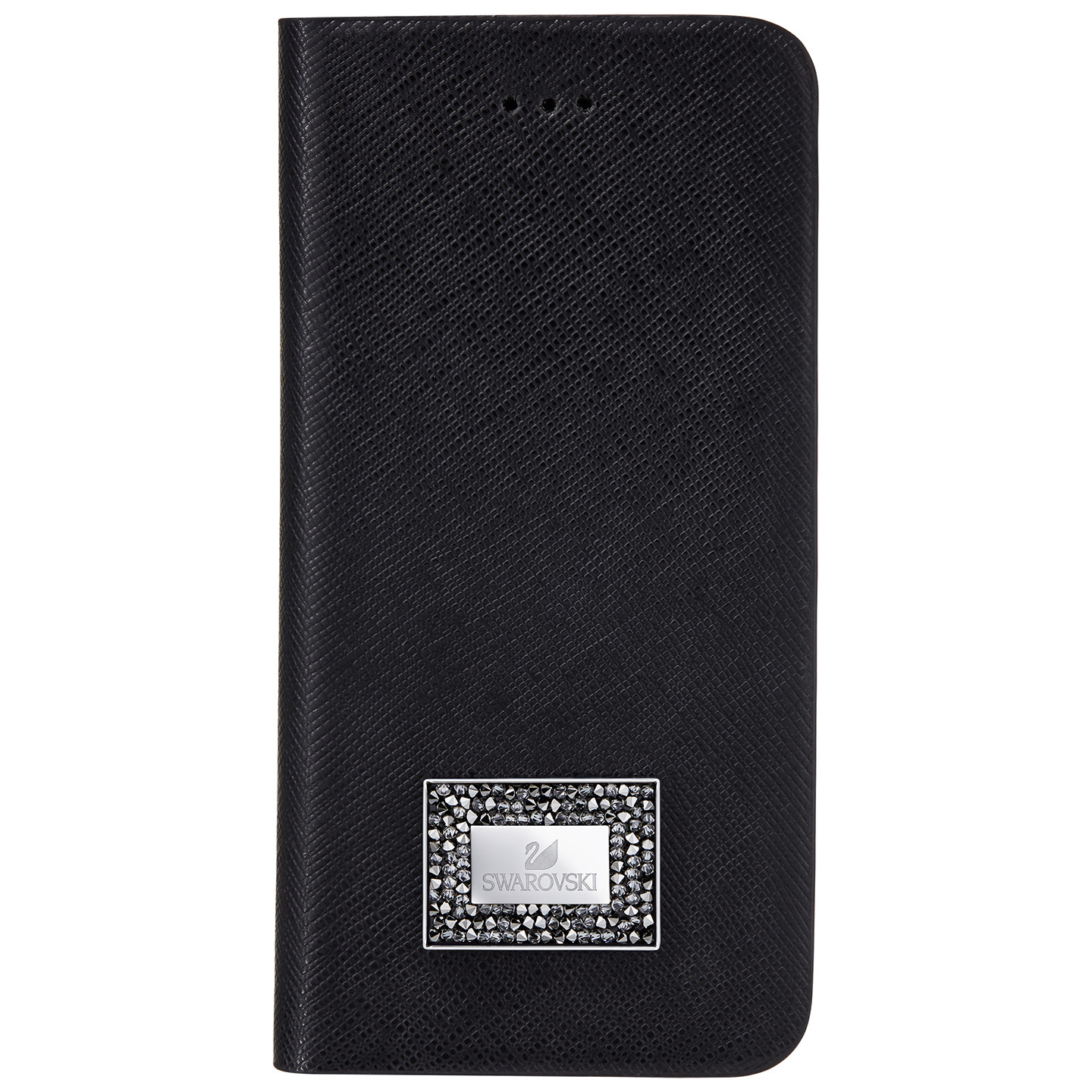 Размер: 14 x 7 x 1,2 см. Этот практичный стильный чехол-книжка из чёрной кожи Saffiano для iPhone® 7 украшен серебряными кристаллами в технике Crystal Rocks. Он дополнен металлической пластинкой с логотипом Swarovski, защитной планкой и двумя кармашками для карт. Чехол-книжка лучше защищает телефон. iPhone® – торговая марка Apple Inc.