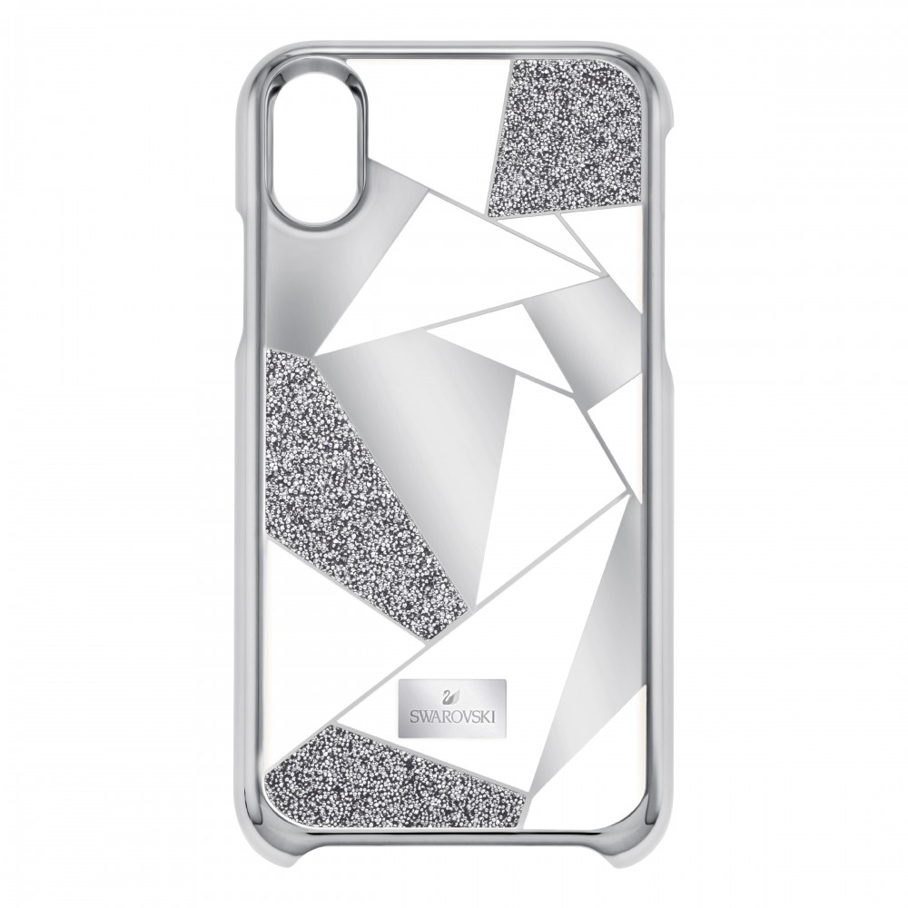 Размер: 14,7 x 7,5 x 1 см. Этот уникальный чехол оттенка серебра поможет вам выделиться из толпы. Изделие многогранного дизайна для iPhone® X украшено металлическими зеркальными панелями, прозрачными элементами и фрагментами мерцающей ткани Crystal Fabric. Этот драматичный аксессуар, символизирующий поверхности кристалла, лучится узнаваемым стилем Swarovski. Чехол с защитной планкой украшен логотипом Swarovski. iPhone® – торговая марка Apple Inc.
