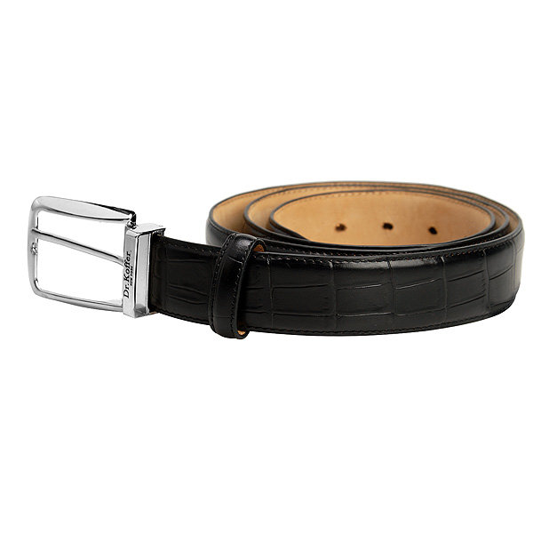 Длина 125 см, ширина 3,4 см. Элегантный мужской ремень с классической пряжкой. Беспроигрышный вариант как для брюк, так и для джинсов. Как на каждый день, так и для особых случаев, требующих костюма. Модель смотрится убедительно элегантно благодаря коже “Кардифф”, из которой сшита. Это итальянская полуматовая кожа “под крокодила” удивительно близкая к своему природному образцу – с тонким тиснением и естественным рисунком ячеек: более и менее крупных.Ремень аккуратно прошит по краям, очень гибкий, легко укладывается в кольцо. Продается в стильной подарочной коробке.