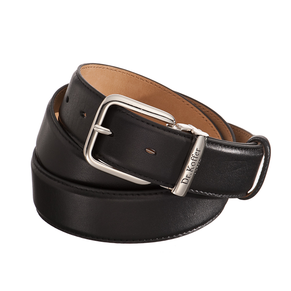 Длина 120 см, ширина 3,4 см. Элегантный мужской ремень с классической пряжкой. Беспроигрышный вариант как для брюк, так и для джинсов. Как на каждый день, так и для особых случаев, требующих костюма. Нежнейшая, как велюр, кожа внутренней отделки, безупречная внешняя. Обратите внимание, в коллекции Dr. Koffer имеются варианты как из глянцевой, так и из матовой кожи. Ремень аккуратно прошит по краям, очень гибкий, легко укладывается в кольцо. На пряжке – изящно вытесненный логотип Dr. Koffer. Длина модели 120 см. Продается в стильной подарочной коробке.