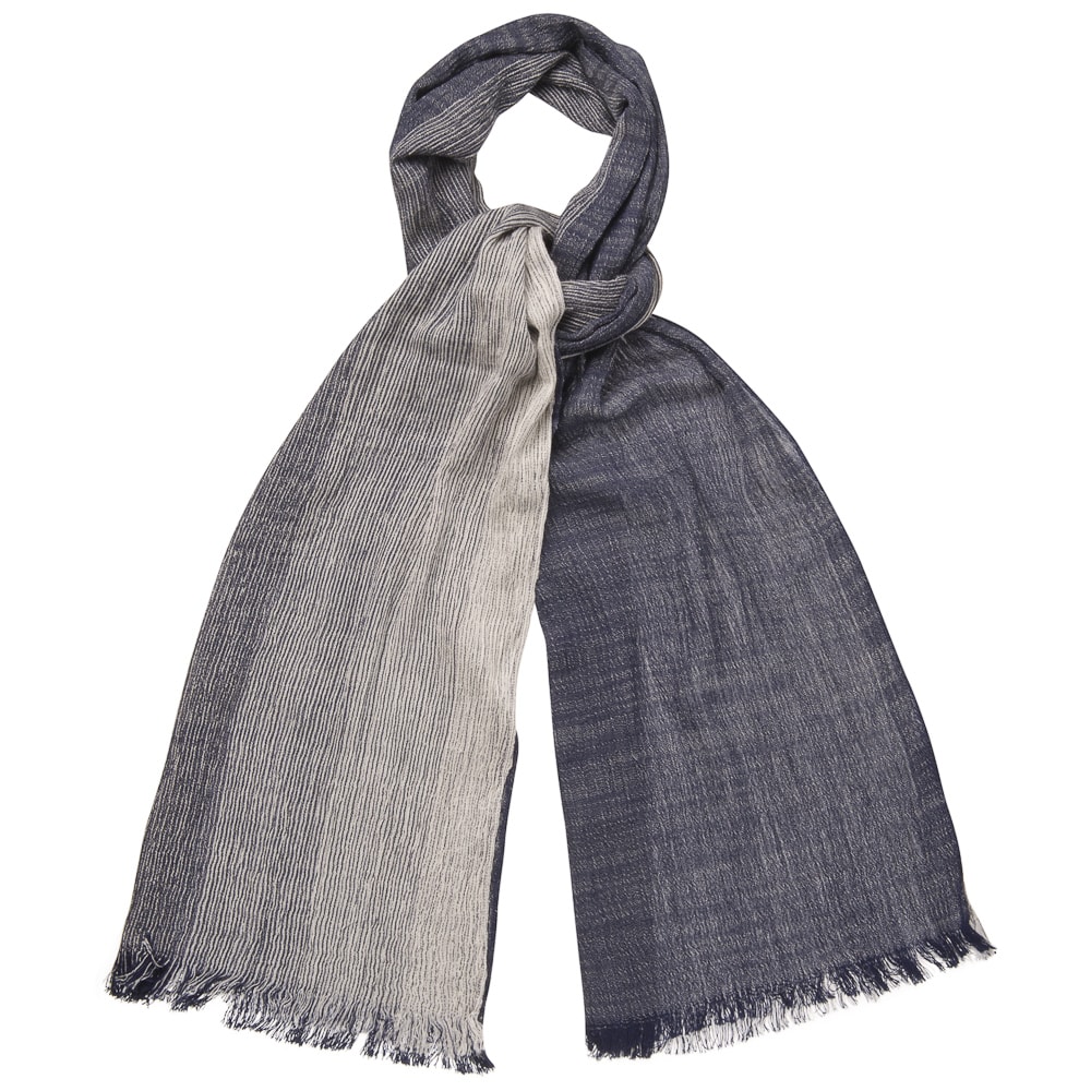 Размер: 80 х 180 см. Разнообразный в драпировке шарф, потому что одна половина его полотна меланжевая, а вторая – в мелкую полоску. В зависимости от сочетаемости с гардеробом шарф можно укладывать либо меланжевой стороной наружу, либо полосками, либо драпировать их так, чтобы обе были на виду. В драпировке шарф укладывается гладко, создавая совсем небольшой объем. Состав – 100%-й хлопок, ручная стирка разрешена. Обратите внимание, модель представлена в разных цветах. Шарф продается в фирменной подарочной коробке с пластиковым окошком.