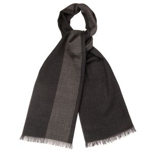 Размер: 45 х 180 см. Изумительно стильный шарф. Всего два цвета – традиционно мужских и поэтому темных, всего две фактуры – строгая елочка и мелкий орнамент, и опять же сдержанные, мужские. Но умелое и оригинальное дизайнерское решение, соединившее их на одном полотне, создало в итоге безусловно мужской и так же безусловно необычайно стильный шарф. Его можно драпировать и свободно, и сложив полотно вдоль, одной из двух фактурой наружу. Состав – 100%-я шерсть. Шарф продается в стильной фирменной подарочной коробке с пластиковым окошком.