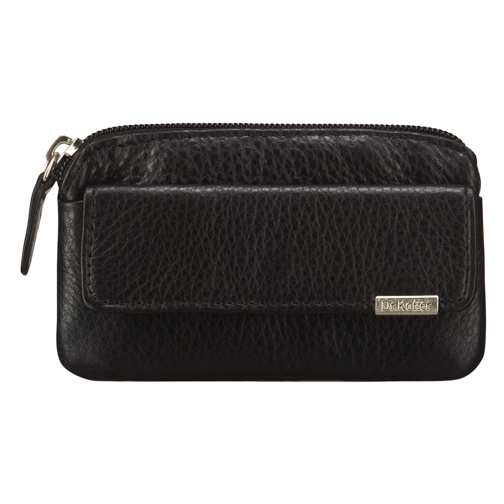Размер: 12 X 7,5 см. Удобная и практичная современная модель. Вытянутая, горизонтальная форма ключницы предполагает, что в нее легко поместятся ключи даже нестандартного размера. Два кольца для ключей размещены на отдельных металлических ушках. На молнии ключницы – удобный кожаный хвостик-захват. На лицевой стороне модели устроен карман для мелких предметов и “заначек”. Карман закрывается на классическую кнопку. На клапане кармана – клипса с логотипом Dr. Koffer. Ключница сшита из роскошной мягкой кожи и продается в стильной подарочной коробке. Внимание! В зависимости от партии ключница может быть с одним или двуми кольцами.