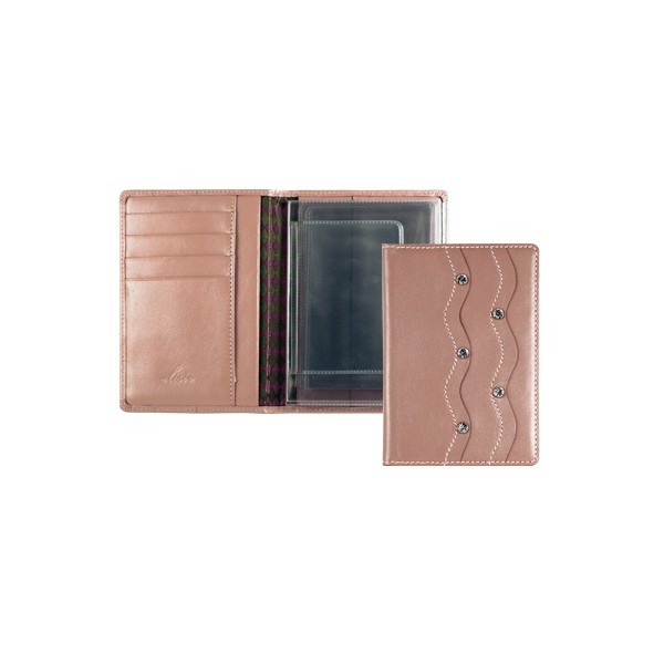 Размеры: 107х138х13 мм. Бумажник водителя Elisir, коллекция «Россе» с риветами Swarovski, стандартного размера, из натуральной кожи розового цвета. Внутри 3 кармана для кредиток и 2 открытых кармана из кожи.