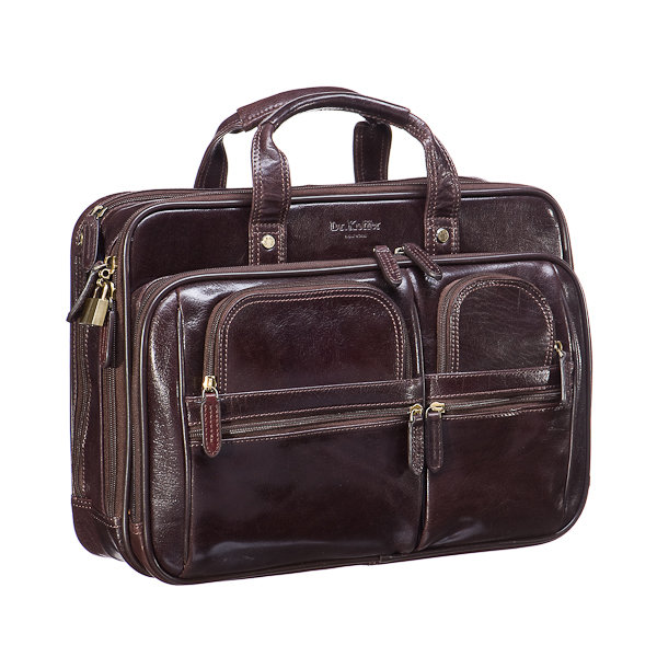 Размер: 42x30x14 см. атериал: Buffalo 59: экологичная кожа растительного дубления, сдержанно глянцевая, с тонкими, абсолютно естественного вида, “линиями” по поверхности.Сумка для документов демократичной внешности, с парой ручек, обилием наружных карманов. У модели их четыре на лицевой стороне и один на обратной, плюс – большая наружная секция с бизнес-блоком: гнездами для телефона, карточек, визиток, набором мини-инструментов и телефонной книжкой. В первом отделении большой мягкий карман для iPad либо нетбука с хлястиком на липучке, во втором – три удобные секции для папок с бумагами. Съемный плечевой ремень прилагается.