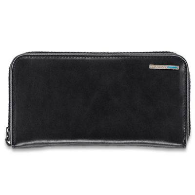 Размер: 19 х 10 х 2,2 см. 4 отделения для купюр, 11 кармашков для кредитных карт, отделение для монет на молнии, окошко-сеточка и отделение для мобильного телефона.