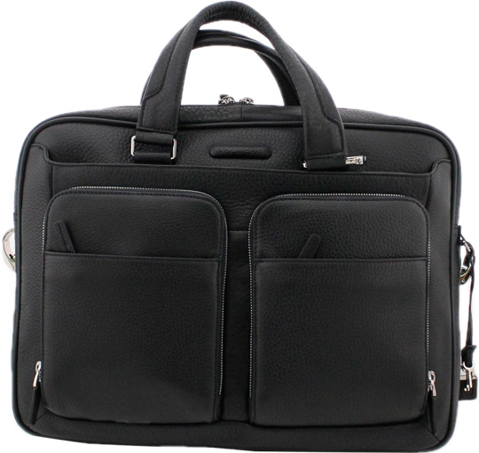 Размер: 39,5 x 28,5 x 10,5 см. Сумка на молнии. Внутри: одно основное отделение, съёмное отделение для документов, держатели для пишущих инструментов, держатель для ключей, отделение для мобильного телефона, отделение для мелких предметов, кармашек для USB-флешки. Возможность разместить ноутбук до 15 дюймов и планшетный компьютер. Снаружи: на передней стенке 5 отделений на молнии, на задней стенке система крепления к ручке багажной сумки, отделение на молнии и адресная бирка. Сбоку карман для бутылки. Замок. В комплекте регулируемый плечевой ремень.