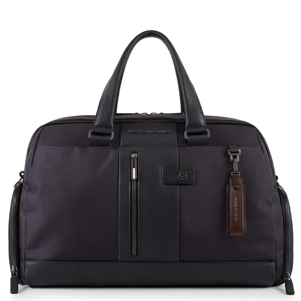 Размеры: 48 x 30 x 23 см. Дорожная сумка из новой коллекции Piquadro Brief. Изготовлена из 100% высокопрочного нейлона и вставок из мелкозернистой телячьей кожи с металлической фурнитурой. Имеет одно вместительное отделение, карман на молнии для телефона и письменных принадлежностей, а также удобный отсек для обуви. Прекрасный вариант, как для деловых командировок, так и для небольших путешествий.