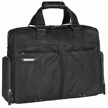 Размер: 45 х 30 х 10 см. Одно основное отделение. Отделение для ноутбука (15 дюймов) с фиксацией, отделения для кредитных карт, ручек и пр.. Съемное крепление для ключей. Система крепления на ручке багажной сумки. Четыре внешних кармана на молнии.