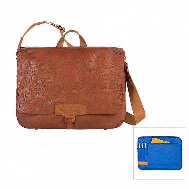 Размер: 37,5 х 27 х 10,5 см. Одно основное отделение под клапаном. Синий съемный чехол на молнии для ноутбука (13 дюймов) и Ipad mini, с отделениями для ручек. Съемная адресная бирка. Регулируемый плечевой ремень.