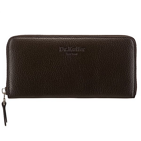 Размер: 19 х 9,5 см. Цвет: коричневый. Закрывается на молнию. Внутри четыре отделения для купюр, разделенные карманом на молнии для мелочи и перегородками, два открытых кармана, кармашки для пластиковых карточек и два кармана-окошка.