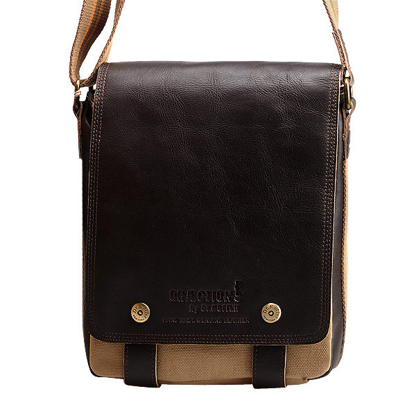 Размер: 28x22x9 см. Материал: Vegetable + парусина 50: одна из самых удачных и любимых дизайнерами комбинаций: натуральной кожи и натуральной ткани – из хлопка, с яркой природной фактурой. Брутальная модель для независимого и уверенного в себе молодого покупателя. Подчеркнуто лаконичный дизайн, ткань под грубый брезент и спокойная, натурального вида, без изысков, кожа. Клапан на удобных магнитных “глазках”-шпильках. В наружном кармане – бизнес-блок с гнездами для мобильного, ручек-карандашей, визиток. В основном отделении карман на молнии. Плечевой ремень комфортный, эффектный, надежно закрепленный, – вшит на прочную ленту, пущенную в обхват сумки. Фурнитура модели выполнена из сатинированного металла.