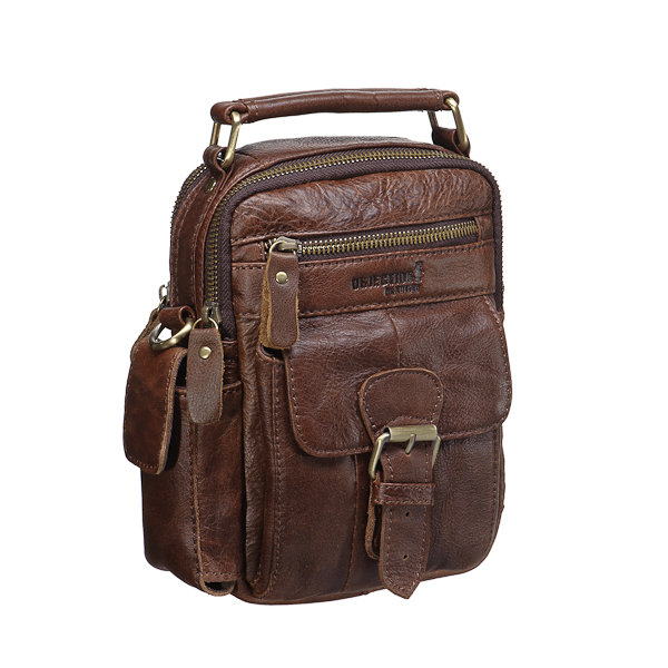 Размер: 14x20x6 см. Материал: Marlboro Brown ( 21 ) ноская “мужская” кожа с антицарапной выделкой – легкие повреждения поверхности стираются с нее, в буквальном смысле слова, движением руки. Запоминающаяся сумка, которую хочется неспешно и долго рассматривать. Шикарный наружный карман из времен вестернов закрывается на настоящую ременную застежку. Но зато боковой карман для мобильного (чтобы обеспечить владельцу быстрый доступ к телефону) – на магнитной кнопке. Помимо них снаружи еще два кармана на лицевой и обратной сторонах. У модели два отделения, в одном – гнездо для мобильного и петли для ручек, во втором – карман на молнии. Сумка сшита из кожи Мальборо, царапины на ней легко заглаживаются движением руки.
