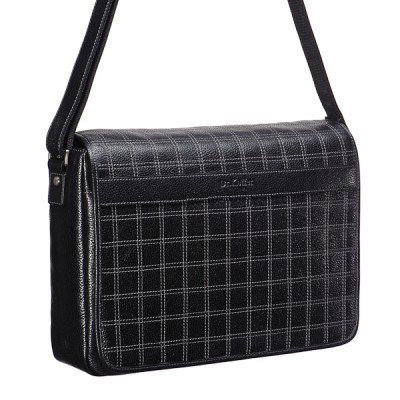 Размер: 26,5x38x9 см. Материал: Venetian Black ( 02 ) одна из самых известных кож – выглядит дорого, что называется, богато; изготавливается методом растительного дубления; легкий глянец и зернистый рисунок – благородно сдержанные.Внушительная – и по размеру, и по дизайну – мужская сумка. Клапан – на магнитных кнопках, обратная сторона его – из замши в тон кожи. Под клапаном – открытый карман с большим бизнес - блоком (записная книжка, “гнезда” для телефона, визиток, ручек). Карман фиксируется скрытым магнитом. Огромное основное отделение с большим карманом закрывается на молнию. Еще один карман на молнии – на обратной стороне. Ремень регулируется, фурнитура – под бронзу. Аксессуары, выполненные в том же шахматном дизайне: портмоне и прочее, имеются.