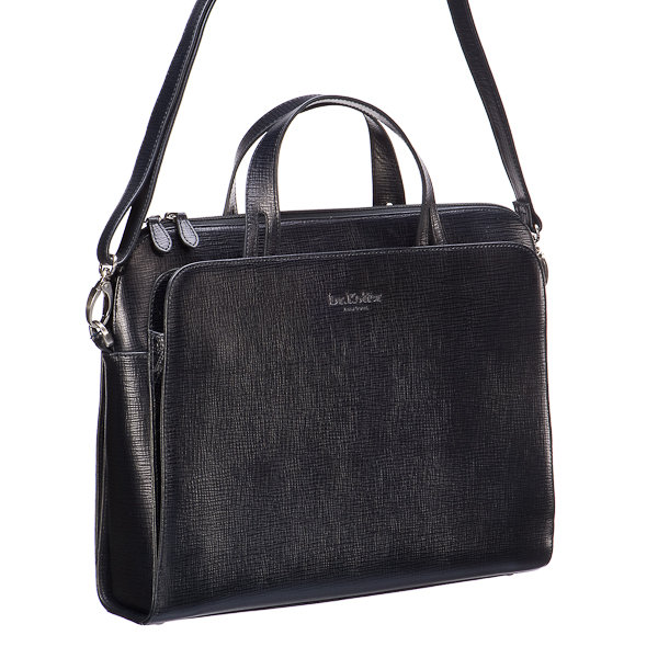 Размер: 30x37 см. Материал: CORTICES LEATHER BLACK.Женственная и при этом идеально соответствующая деловому имиджу и ожиданиям, предъявляемым к деловым аксессуарам, модель. Пропоролоненные стенки основного отделения предполагают размещение здесь планшетного iPad или ноутбука. Бизнес-блок с кармашками для мобильного, визиток, карточек и ручек вынесен в одну из наружных секций. Здесь же брелок для ключа на кнопке. Вторая наружная секция свободна. Обе секции удобно и быстро закрываются на скрытые магниты. Снизу сумки четыре изящных упора. Съемный плечевой ремень прилагается.