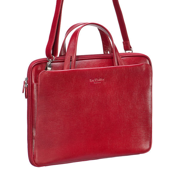Размер: 30x39 см. Изящная вариация на тему классической плоской папки для документов. Эффектные ручки с прорезями удобно ложатся в руку. Смягченные стенки намекают на готовность вместить iPad и другую компьютерную технику. На обеих сторонах устроены удобные наружные секции, закрывающиеся на скрытые магниты. Внутри секций остроумно спрятаны крепления съемного плечевого ремня. В одной из них расположен бизнес-блок с гнездами для телефона, визиток, петельками для ручек и брелоком на кнопке. В основном отделении большой карман на молнии.