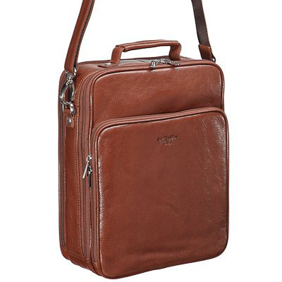 Размер: 31x24x12 см. Материал: Galaxy Goat Cognac ( 63 ) замечательная глянцевая кожа растительного дубления; ценится за красоту и прочность, устойчива к потертостям и царапинам, примечательна интересным, природным рисунком, ровным по всей поверхности.Серьезная, практичная сумка. Особо впечатляет в состоянии, когда молнии всех отделений (их два) и наружного кармана открыты. Сразу становится ясно, что сюда поместится всего много и разного по размеру. В наружном кармане на лицевой стороне – гнезда для визиток в два ряда, карманы для телефона и калькулятора и петли для ручек. Еще один наружный карман – на обратной стороне сумки. В первом отделении – сетчатый карман на липучке и еще один на молнии. Во втором – карман на молнии. Карабины съемного ремня – нажимные, удобные.