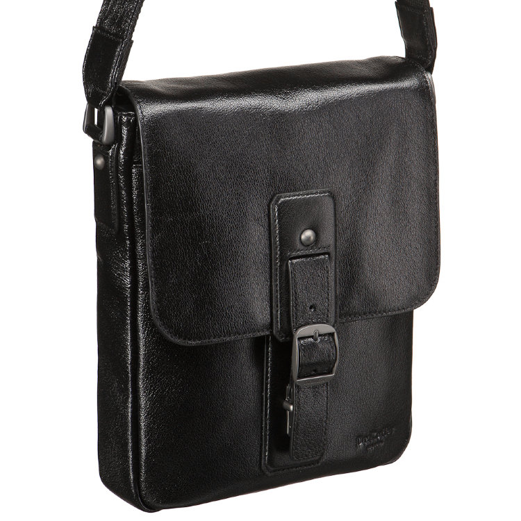Размер 22х27х5 см. Материал: Buffalo Black экологичная кожа растительного дубления, сдержанно глянцевая, с тонкими, абсолютно естественного вида, “линиями” по поверхности. Компактная сумка с эффектно оформленным пространством вокруг фальшремешка. Под фальшремешком удобный и быстрый замок-защелка. Все необходимые наружные карманы имеются: один на лицевой, второй на обратной стороне, оба закрываются на скрытые магниты. Внутри сумки карман на молнии и гнезда для телефона, визиток, ручек. Основное отделение закрывается на магнитные кнопки. Модель сшита из приятной, классической выделки кожи. Кожаный плечевой ремень упрочен текстильной основой, которая придает ему приятную пластичность и послушность.