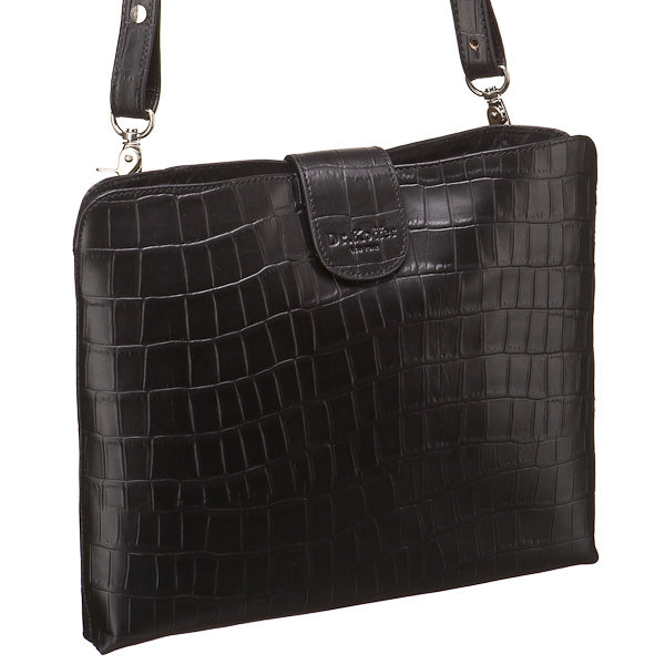 Размер: 29х25х3 см. Материал: Cardiff 102 Итальянская полуматовая кожа с элегантным тиснением «под крокодила», аккуратно копирующим рисунок природного оригинала.Планшет для планшетника. Сумка жесткой формы, что оправдано ее предназначением – быть местом размещения высокотехнологичного устройства. Можно носить в руках, можно на ремне на плече. Съемный изящный ремешок крепится к обратной стороне модели как это и принято в сумках-планшетах. Хлястик закрывается на липучку. Внутри сумки пропоролоненная секция для компьютера и открытые карманы для телефона и визиток. Внутреннее пространство модели допускает размещение бумаг и других необъемных предметов.