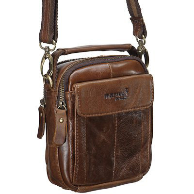 Размер: 19x14x8 см. Материал: Marlboro Brown ( 21 ) ноская “мужская” кожа с антицарапной выделкой – легкие повреждения поверхности стираются с нее, в буквальном смысле слова, движением руки. Практичная, необременяющая владельца модель с массой удобных деталей. А именно, – удобная для человека, ведущего активный образ жизни, антицарапная кожа Мальборо. Удобная ручка, удобное расположение отделений по обе стороны от ручки. В первом отделении – гнездо для мобильного, во втором – карман на молнии и стенка-разделитель. На движках молний удобные и эффектные кожаные захваты. Для крепления съемного плечевого ремня – удобные ушки. На обратной стороне сумки карман на магнитной кнопке, на лицевой еще один, под клапаном.