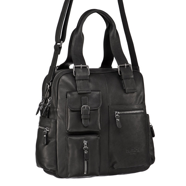 Размер: 33x30x13 см. Материал: Colombia.Респектабельная модель из модной матовой кожи с умопомрачительным количеством наружных карманов – общим счетом их девять. Те, что расположены на лицевой стороне, кроме своего прямого назначения, еще и великолепно украшают сумку. По бокам модели блоки из кармана на молнии и открытого. В первом отделении гнезда для мобильного, карточек и петельки для ручек. Во втором отделении карман на молнии. Удобные ручки на эффектных ременных застежках, съемный плечевой ремень имеется. Фурнитура стильная, тонированная в цвет кожи.