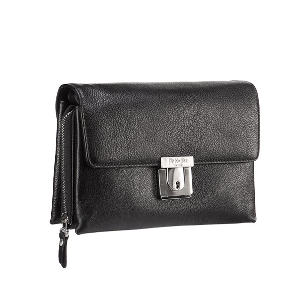 Размер: 13x19x5 см. Материал: Venetian 02: одна из самых известных кож – выглядит дорого, что называется, богато; изготавливается методом растительного дубления; легкий глянец и зернистый рисунок – благородно сдержанные. Небольшая – идеальная для того, чтобы удобно устроиться в руке – сумка-визитка. Ручка-петелька убирается вовнутрь, на обратной стороне модели шлевка для ладони, которая позволяет комфортно носить сумку в руке. Сразу три отделения, среднее надежно закрывается на молнию. В нем открытый карман, карман-перегородка и кармашки для карточек. В двух других отделениях потайной карман, карман с прозрачным окошком и петелька для ручки. Обратная сторона клапана выполнена из благородной замши, фурнитура из сатинированного металла.