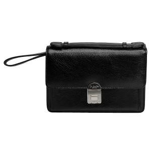 Размер: 22х15х6,5 см. Материал: Venetian. Интересная модель с массой скрытых достоинств. Первое – спрятанная во внутреннем сгибе клапана вытяжная ручка-петля. Это еще одна ручка, дополнительная к первой, устроенной сверху сумки. Второе достоинство скрыто под клапаном. Это оригинальный блок для визиток и карточек, он крепится на кнопку и открывается на 180 градусов. Здесь же, под кнопкой блока – карман на молнии и открытый. Между двумя отделениями – карман-перегородка на молнии. На обратной стороне модели – карман на молнии. Клапан закрывается на стильный замок.
