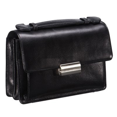 Размер: 22х15х6,5 см. Материал: Venetian Black 02: одна из самых известных кож – выглядит дорого, что называется, богато; изготавливается методом растительного дубления; легкий глянец и зернистый рисунок – благородно сдержанные. Интересная модель с массой скрытых достоинств. Первое – спрятанная во внутреннем сгибе клапана вытяжная ручка-петля. Это еще одна ручка, дополнительная к первой, устроенной сверху сумки. Второе достоинство скрыто под клапаном. Это оригинальный блок для визиток и карточек, он крепится на кнопку и открывается на 180 градусов. Здесь же, под кнопкой блока – карман на молнии и открытый. Между двумя отделениями – карман-перегородка на молнии. На обратной стороне модели – карман на молнии. Клапан закрывается на стильный замок.