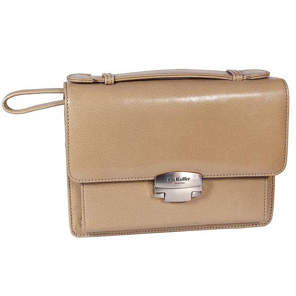 Размер: 22х15х6,5 см. Материал: Galaxy Goat Beige 63: замечательная глянцевая кожа растительного дубления; ценится за красоту и прочность, устойчива к потертостям и царапинам, примечательна интересным, природным рисунком, ровным по всей поверхности. Интересная модель с массой скрытых достоинств. Первое – спрятанная во внутреннем сгибе клапана вытяжная ручка-петля. Это еще одна ручка, дополнительная к первой, устроенной сверху сумки. Второе достоинство скрыто под клапаном. Это оригинальный блок для визиток и карточек, он крепится на кнопку и открывается на 180 градусов. Здесь же, под кнопкой блока – карман на молнии и открытый. Между двумя отделениями – карман-перегородка на молнии. На обратной стороне модели – карман на молнии. Клапан закрывается на стильный замок.