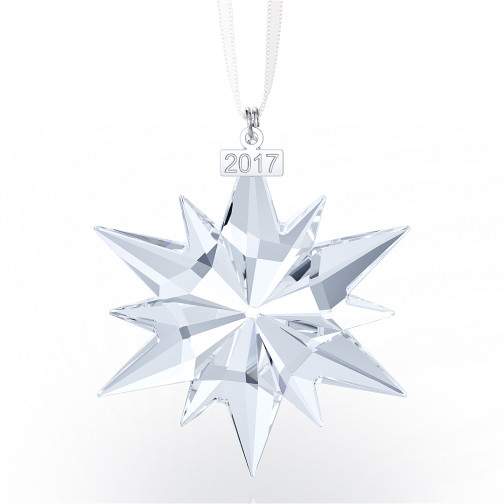 Размер: 7,7 x 6,1 x 0,9 см. Эта потрясающая кристальная звезда, традиционное украшение ежегодного выпуска, доступна только в этом году. На металлическом ярлычке выгравирована надпись «2017». Украшение на элегантной белой атласной ленте восхитительно отражает свет. Оно станет идеальным подарком на свадьбу, годовщину, рождение ребёнка и любую другую памятную дату в 2017 году. Если вы ещё не начали собирать коллекцию, самое время этим заняться! Декоративный объект. Не игрушка. Не подходит для детей младше 15 лет.
